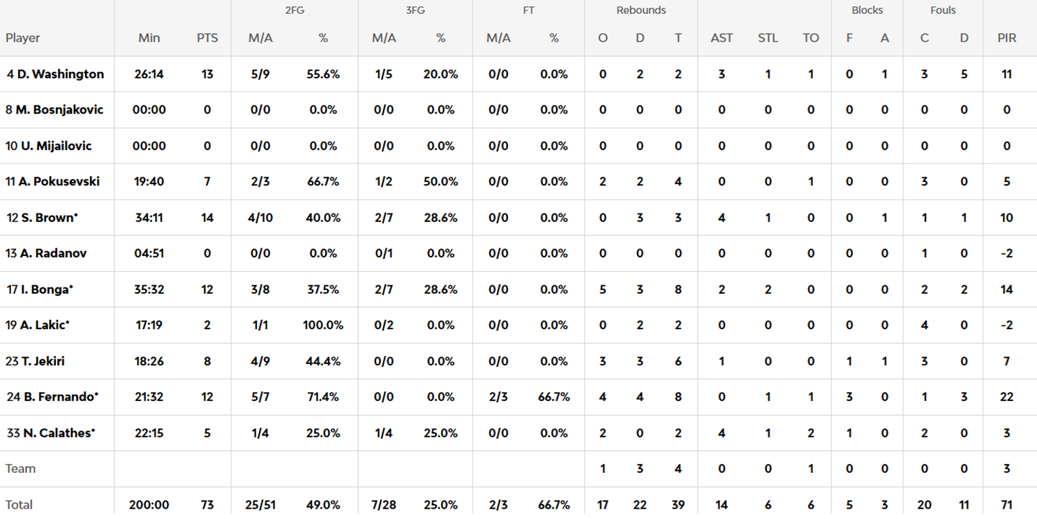 Como era de esperar el mejor partido de Bruno Fernando desde que juega en Partizan, puntos y rebotes, por otro lado Maledon fallando más tiros libres que nunca desde que está en el Madrid, qué cosas.