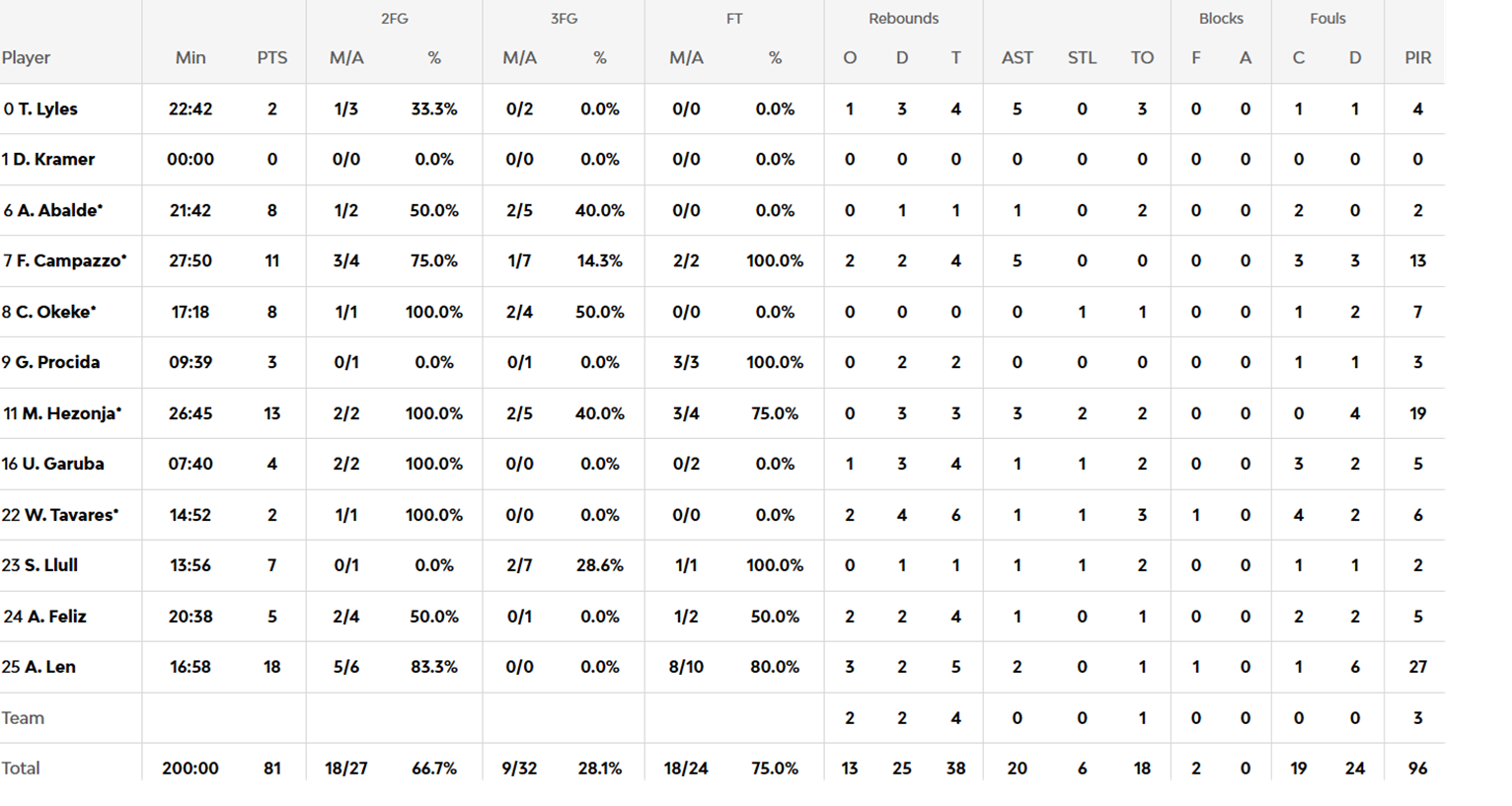 Len parece que no es tan malo como decían, no es un fino estilista pero para suplir a Tavares le da de sobra, cosa que Fernando era incapaz. Tavares pues que decir no se impone ante un equipo que le faltan sus mejores pívots y hace bueno hasta a Len.