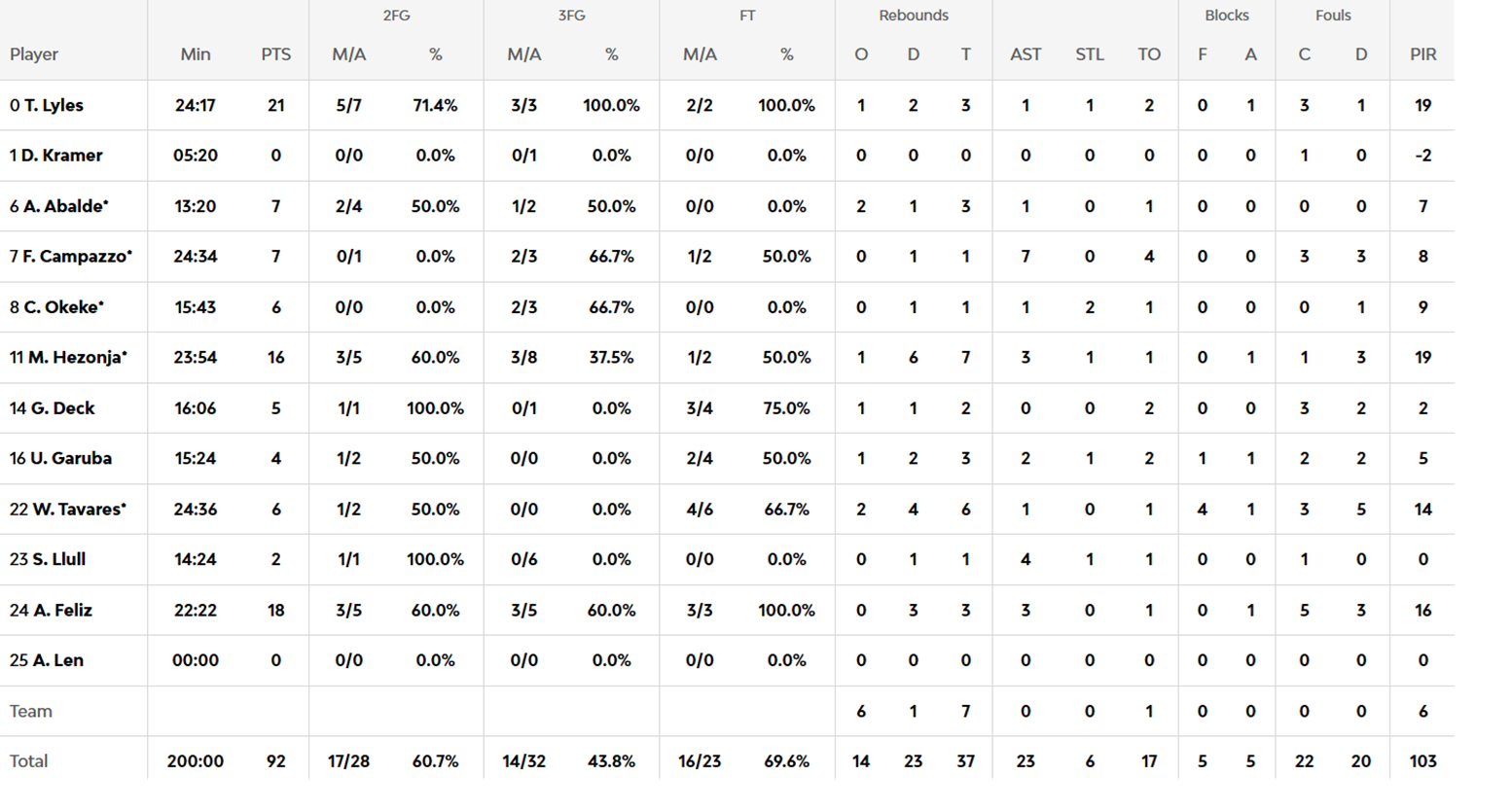 La verdad es que hicimos muchísimos méritos para perder el partido. No controlamos, ni de lejos, el tempo. Concedimos innumerables rebotes ofensivos. Perdimos el balón , incluso sin estar agobiados. Demasiadas ventajas para el adversario. Y no echarle la culpa a Llull, estuvo en sus números normales en esta temporada. Me quedan en la memoria las jugadas de Mario al final de la primera parte, balón perdido y dos puntos fáciles y el ataque a lo general Cúster cuando nos estamos jugando el partido. Mi admirado Facu hoy no estuvo bien y el equipo lo nota mucho. Al que mejor le iba el partido, Feliz, le pitaron dos personales digamos que dudosas con la cera que se estaba repartiendo. Sigo diciendo que jugamos con cuatro muchas veces en ataque, Deck y Okeke están infrautilizados. Y en defensa si juega el capitán muchas veces son tres a defender pero a Lyles se lo perdono , nos lo devuelve en ataque. Mal Scariolo por poner al increíble, por el resto no estuvo mal y curró porque los jugadores estaban empanados. Muchos rebotes los llevaron por ganas.