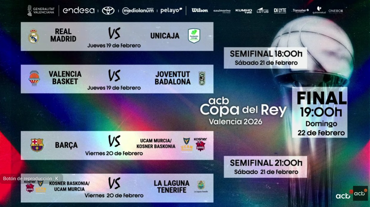 Este lunes se celebró un extraño sorteo de la Copa por la importante distorsión que ha supuesto no saber si el Baskonia o el UCAM Murcia van al torneo como cabeza de serie o no. De hecho, no se sabrá hasta el 8 de febrero, a unos días de los cuartos de final, empiezan el día 19, cuando se dispute el aplazado Gran Canaria-Baskonia.