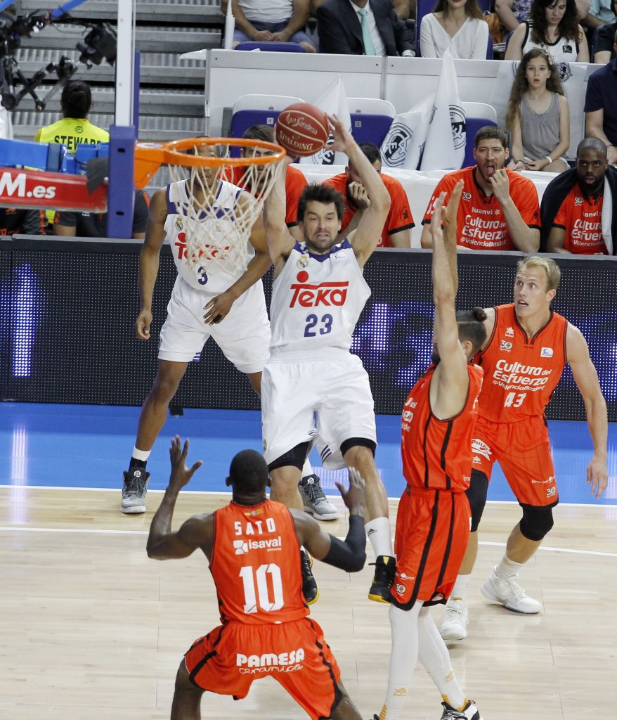 El Real Madrid supo aguantar cada embestida del Valencia Basket, como los de Pedro Martínez supieron remontar cada pequeña ventaja que tomaban los de Pablo Laso. Todas no, la última no supieron y no será porque no tuvieran en su mano forzar un final aún más igualado, pero fallaron en los instantes clave. 87-81 para el Madrid en un partido de guante blanco, donde los ataques superaron con mucha las defensas y apenas se cometieron personales. 17 cada equipo y sólo hubo 16 tiros libres. El domingo, segundo duelo.