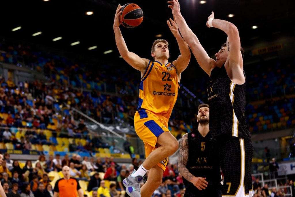 Al descanso había un 46-39 aunque en el tercer cuarto le dieron la vuelta al marcador los de Pianiagiani. Se entró en el último con un 67-68 y el 72-70 fue la última ventaja canaria. El 75-80 parecía indicar que los visitantes se llevaban el partido, llegaron con un 82-97 a los dos minutos finales, pero el ‘Granca’ no se rindió y Eriksson, que estuvo brutal toda la noche, empató a 89 a falta de dos segundos con su quinto triple.