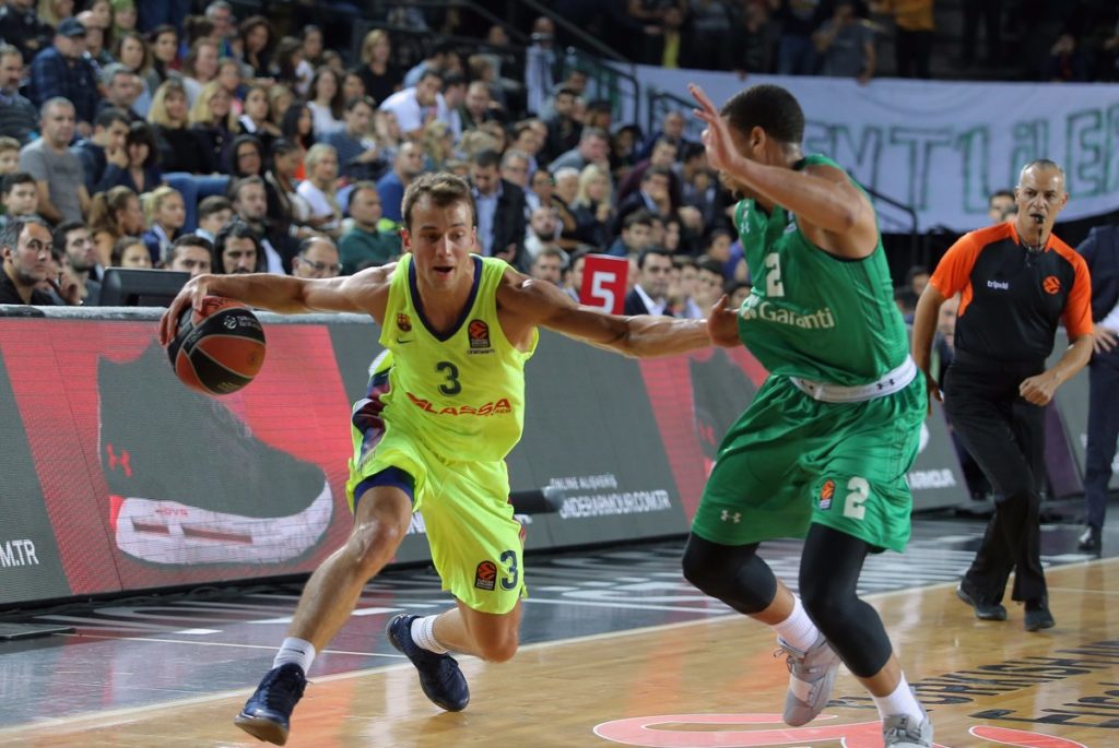 El equipo azulgrana jugó una buena primera parte con la excepción de tres minutos al inicio del segundo cuarto. Buen inicio y rápida ventaja (3-13, min. 5), el equipo turco se acercó un poco (18-23), se acercó a dos con el 28-30, aunque los de Pesic enseguida recuperaron el control del choque a partir de la defensa (30-38).