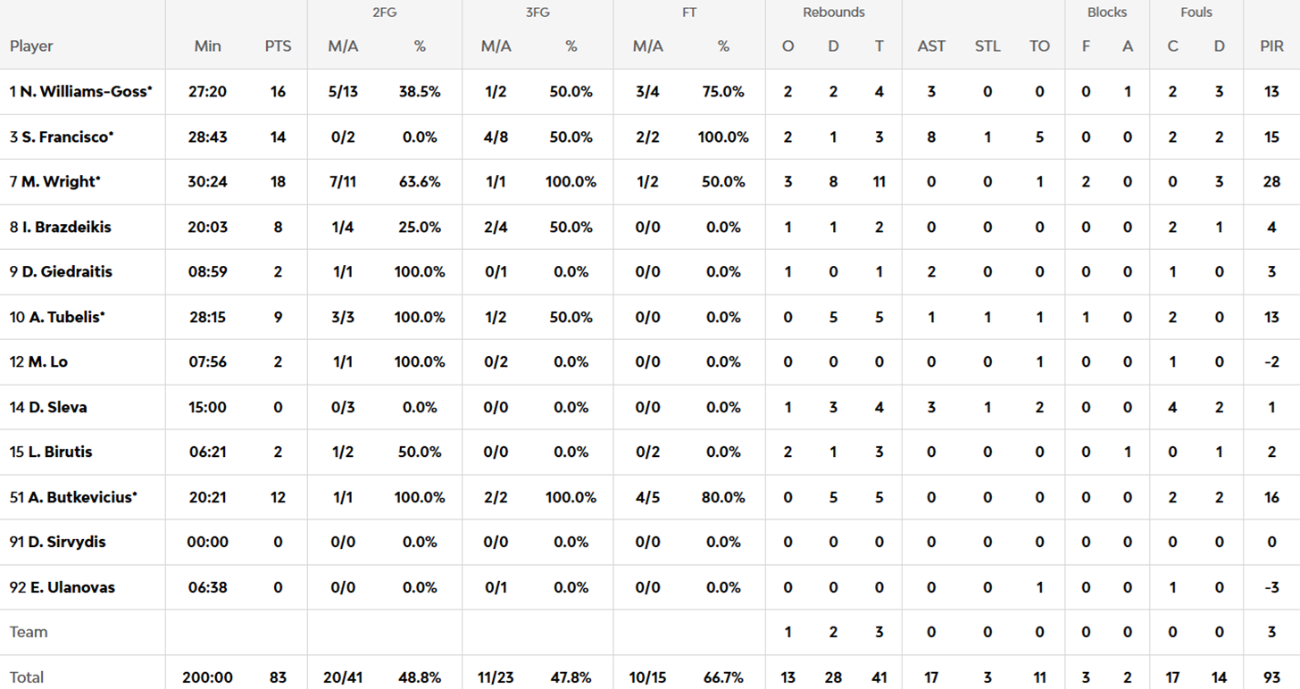 La verdad es que Zalgiris es un equipo muy duro porque apenas tiene altibajos en los partidos, no tiene baches de 3-4 minutos sin anotar por ejemplo, no tiene grandes tiradores pero como tiren cómodos las meten, saben conectar muy bien con sus pívots, Tubelis y Wright reciben siempre muy cerca del aro prácticamente para hacer bandejas.