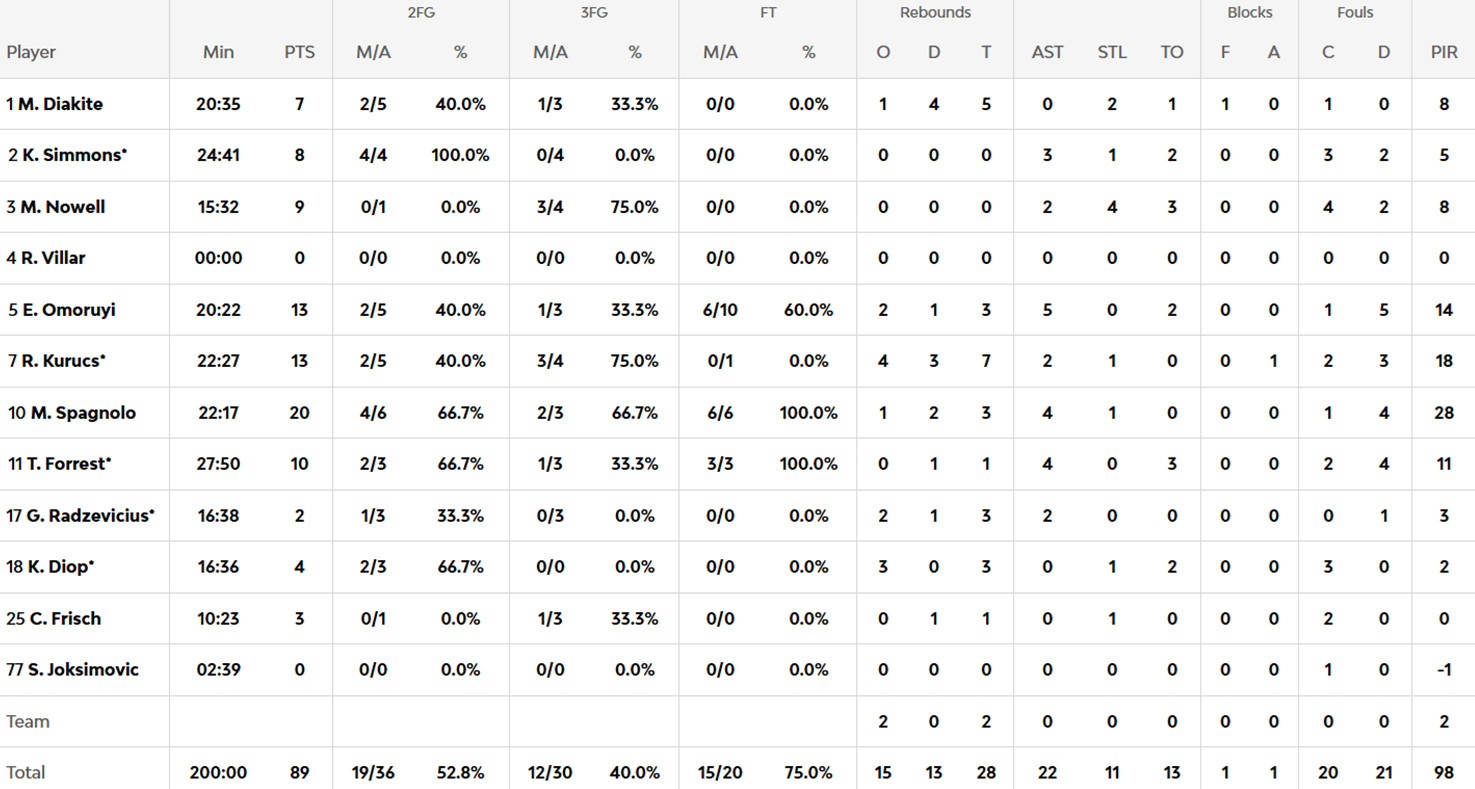 Cierto, y si ves el reparto de minutos, parece ser que el RM no se equivocaba con Rathan, también curioso que consiga sacar rendimiento a un jugador como MCCORMACK, Un saludo