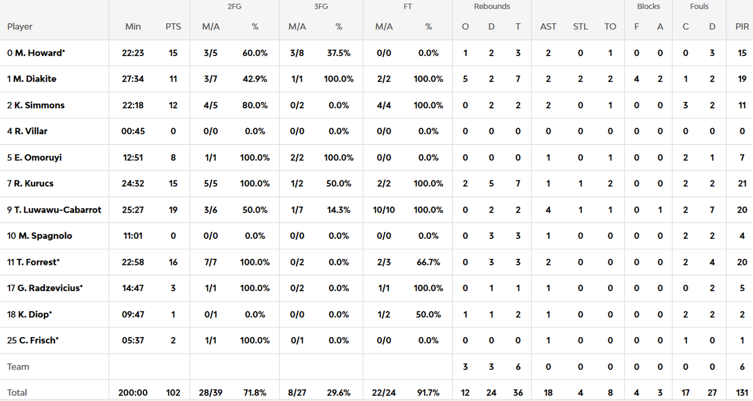 La batalla fue apretada durante 38 minuto pero de repente el partido acabó con un parcial de 11-0 y de ahí la diferencia final pues el Zalgiris dio la cara en todo momento y buscó la victoria hasta que perdió totalmente la puntería y su rival le martilleó. En realidad, todo el encuentro fue una sucesión de canastas y el equipo vitoriano siguió así hasta el segundo final. Así que ofrecieron a sus aficionados una buena fiesta, quizá no les alcance para pelear por el play-in pero queda claro que en casa no regalan nada.