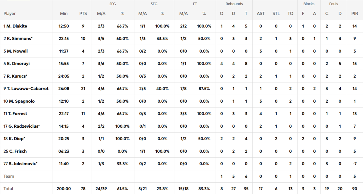 Sorprendía lo poco que habían tirado de tres los locales, sin puntería además, para lo que suele ser habitual en ellos, un 1 de 7, aunque estaban con un fantástico 18 de 24 en lanzamientos de dos. Los doce baskonistas convocados ante la baja de Howard habían pisado la cancha ya y al menos habían metido todos ellos una canasta, incluso el joven canterano Joksimovic, de 17 años.