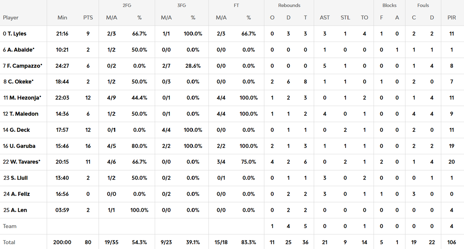 Enhorabuena a Garuba, que ha hecho un gran partido en ambos lados de la cancha. No se ha echado de menos a Tavares cuando estaba en el banquillo.
