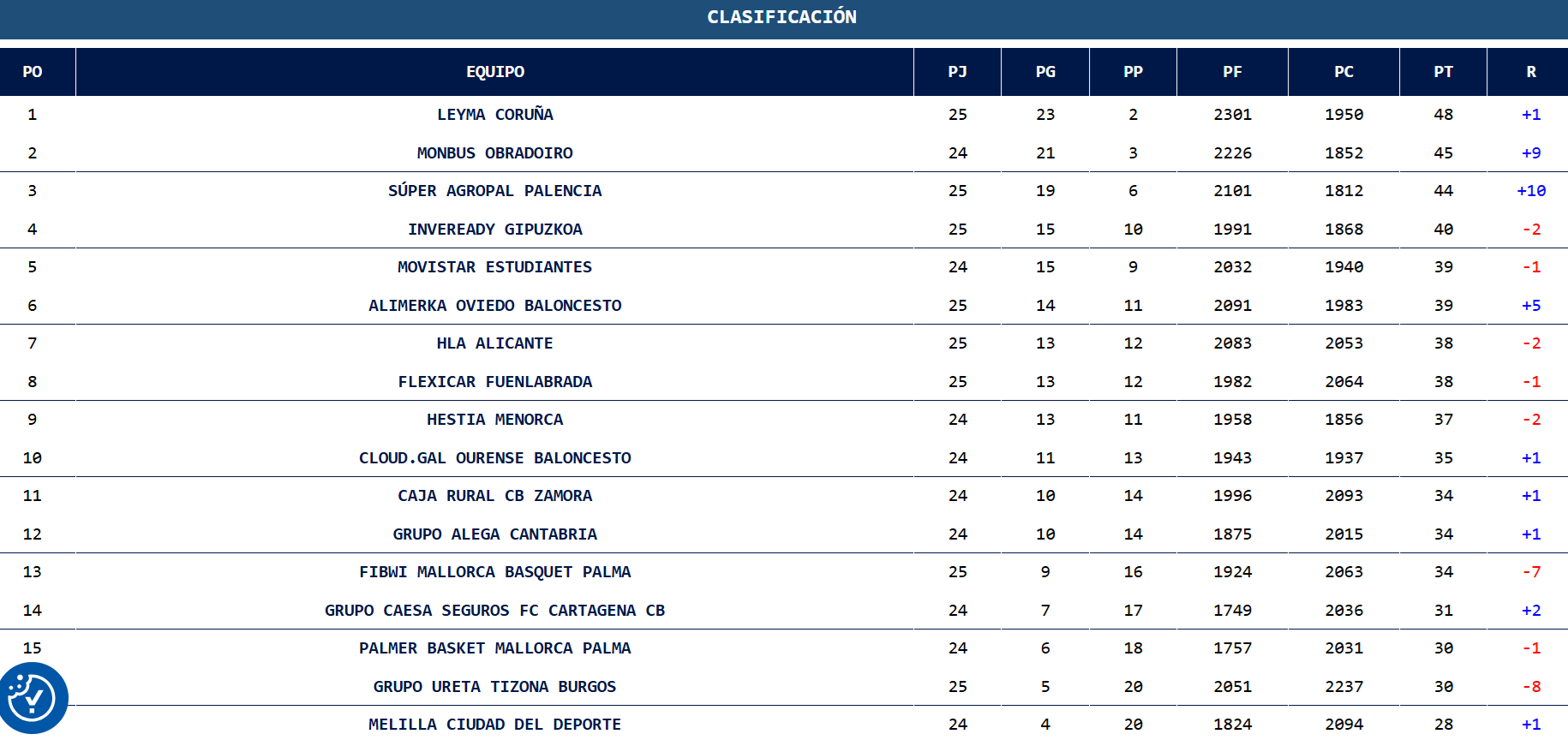 El duelo entre los dos equipos gallegos gana en interés cada semana según van ganando partidos y se acerca su enfrentamiento directo. El ascenso directo es una pugna entre ambos. Esta jornada, el Obradoiro derrotó al Mallorca Palma por 89-80 y fue mucho más claro el triunfo del Leyma Coruña, 105-84 contra un Tizona Burgos que se asoma al abismo del descenso.