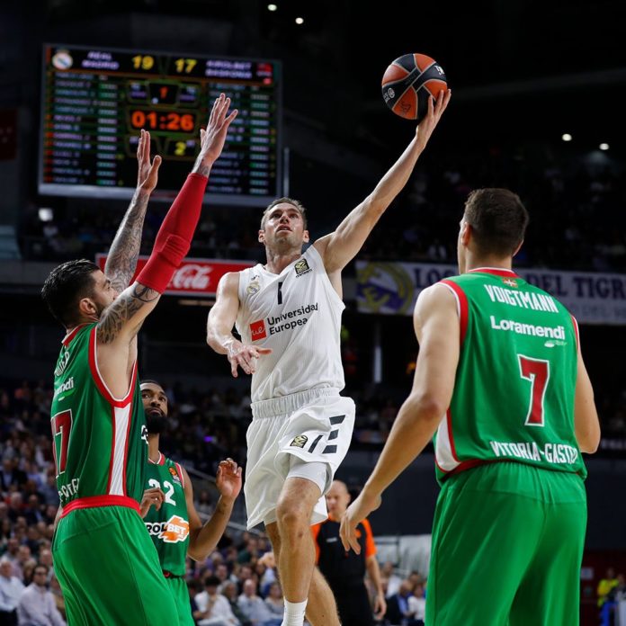 Pero llegó la reacción baskonista y el 44-41. Apenas un par de minutos de igualdad pues llegó otro tirón blanco ante los desajustes del conjunto vitoriano (52-44 al descanso). El 68-37 en valoración era más contundente.