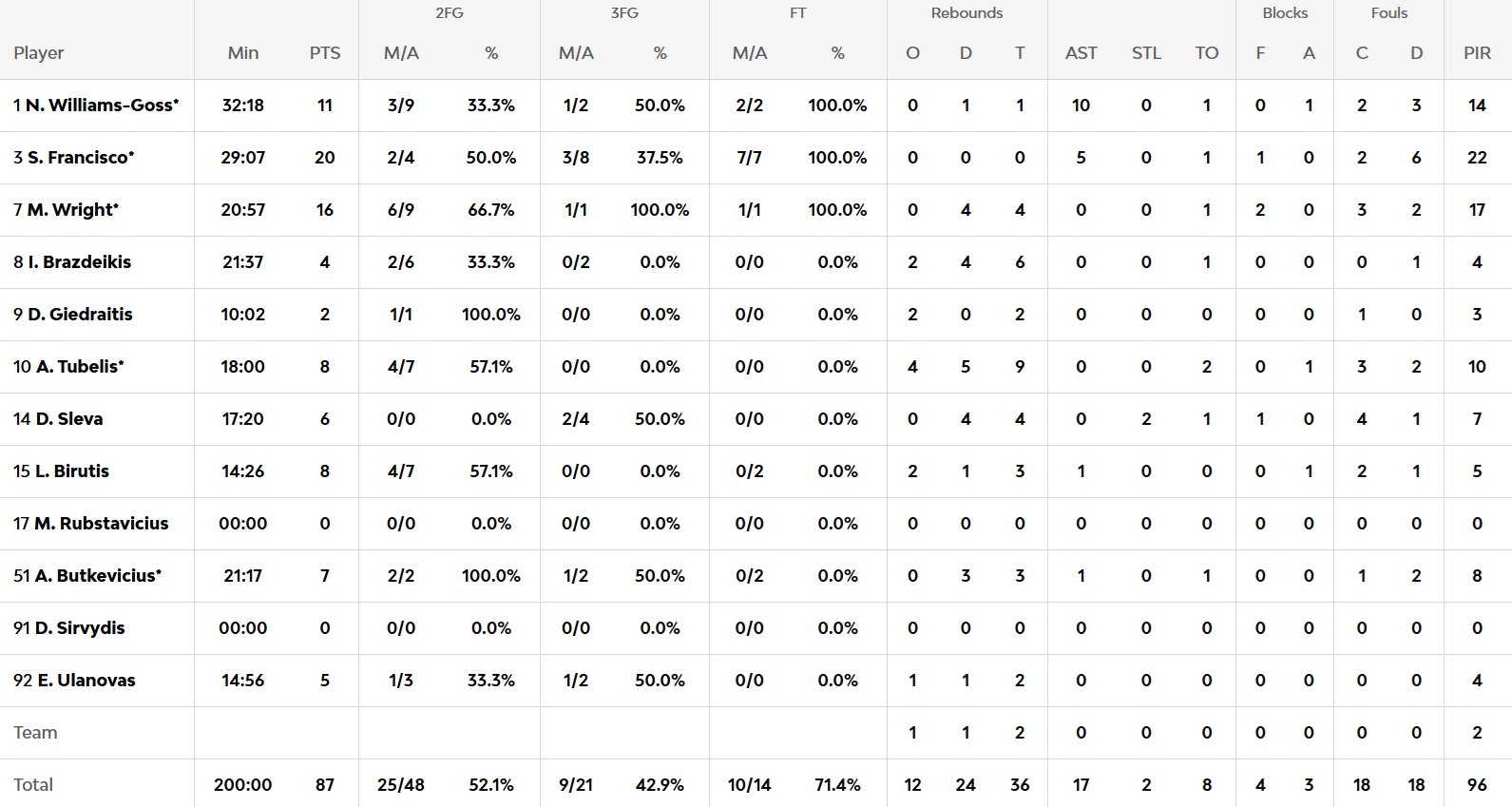 NWG no aparece en la crónica de Javier: anotó 11 puntos y estuvo fantástico en la dirección (10 asistencias).