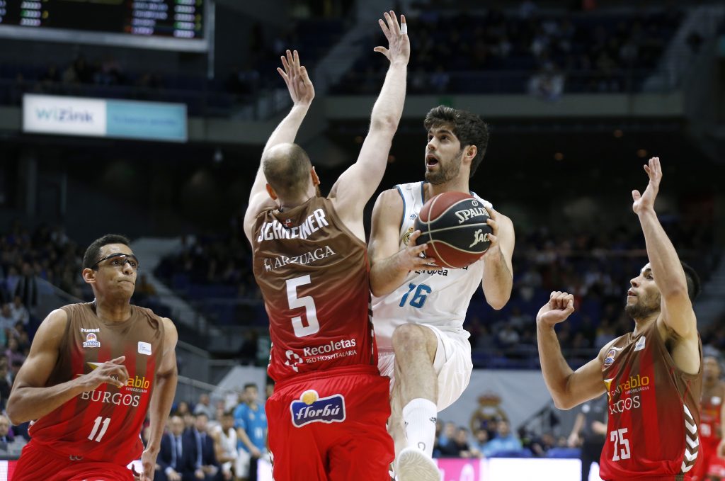 El Real Madrid tuvo un partido plácido en ataque donde una bajada de tensión propició que el San Pablo Burgos se acercara en el marcador. Pero la diferencia de calidad es mucha y el conjunto blanco acabó imponiéndola. De hecho, la diferencia no fue mayor por el 7 de 22 en triples y el 15 de 25 en tiros de personal. Sin embargo, el 48-34 en rebotes le dio muchas segundas opciones. Carroll firmó 18 puntos en 14 minutos y Tavares un 13+13.
