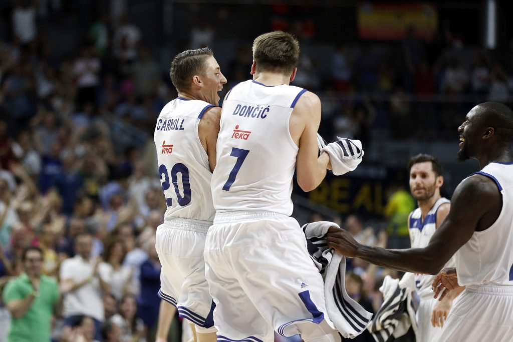 Real Madrid (27+30+22+22): Llull (8), Rudy (-), Maciulis (5), Randolph (11), Ayón (8) cinco inicial-, Carroll (29), Draper (2), Doncic (11), Reyes (5), Hunter (6), Nocioni (2) y Taylor (9).