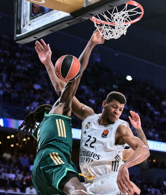 Estaba claro que TJ Shorts, que llevaba una temporada muy mala, iba a hacer un partidazo contra nosotros. De los nuestros, solo se salvan Tavares, Feliz y Abalde. Lo de Llull ya clama al cielo, de verguenza ajena verle «defender» y que su par le saque 2 metros en dos pasos de penetración. Tavares tiene que salir a tapar y deja al pivot rival solo bajo el aro para que haga canasta fácil.