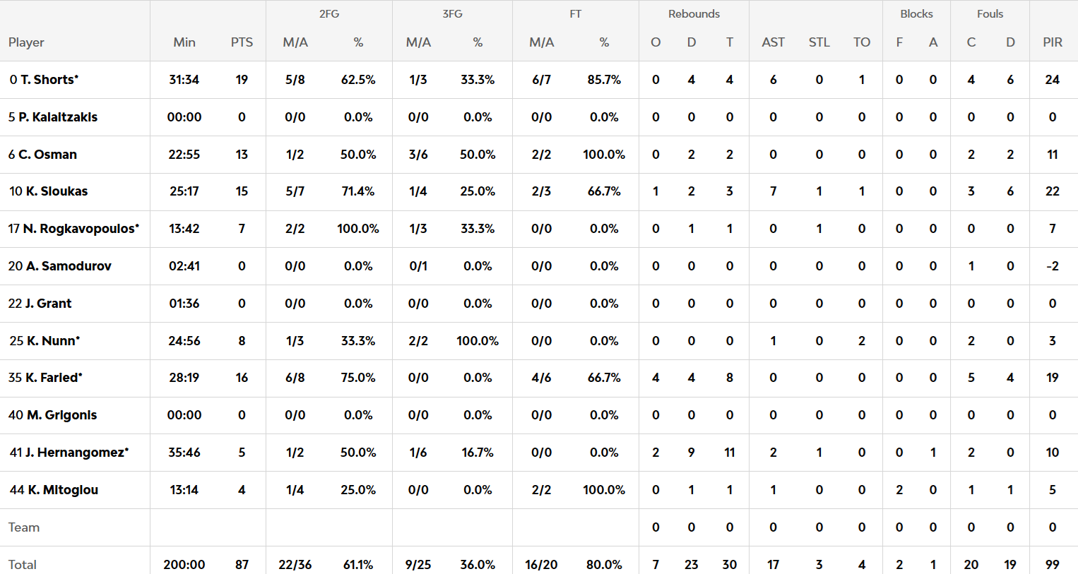 Panathinaikos mostrando su colección de jugadores que pueden reventar un partido: Sloukas, Nunn, Shorts, Faried, mientras que los puntales del RMB están muy lejos de ese nivel.