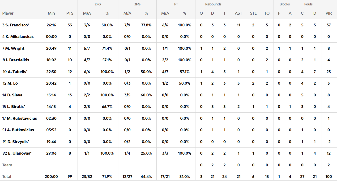 Otro titular posible podría haber sido que el Zalguiris necesitó meter 99 puntos para no perder de 100.