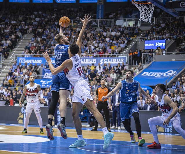El equipo burgalés no tardó en ampliar la diferencia y cada intento de acercamiento del conjunto vasco fue respondido con contundencia desde la pintura y el perímetro por los locales. Dani Díez y Neto se mostraron especialmente inspirados castigando con triples y penetraciones que mantenían la renta rozando los veinte puntos de distancia.