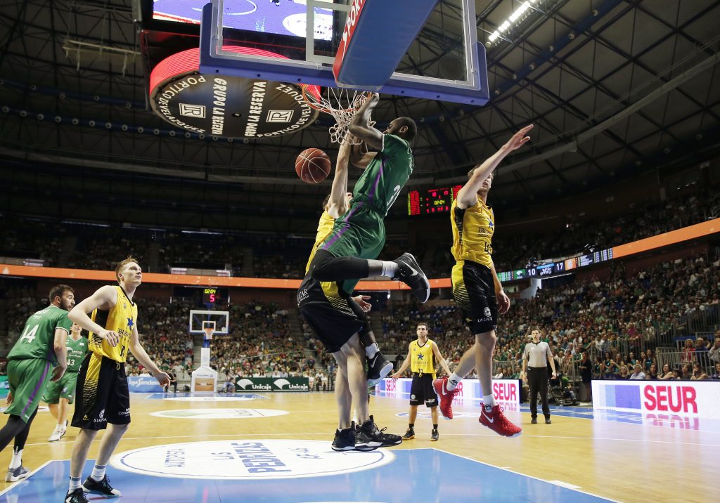El Unicaja se impuso al Iberostar Tenerife, ya sin Abromaitis por lesión, con un claro 79-65. 1-0 en este playoff para el equipo malagueño. Debutó Eyenga y lo hizo muy bien. El parcial de 22-11 en el último cuarto fue decisivo pues hubo igualdad en los primeros 33 minutos. Hubo homenaje al ex jugador Berni Rodríguez, con su camiseta retirada.