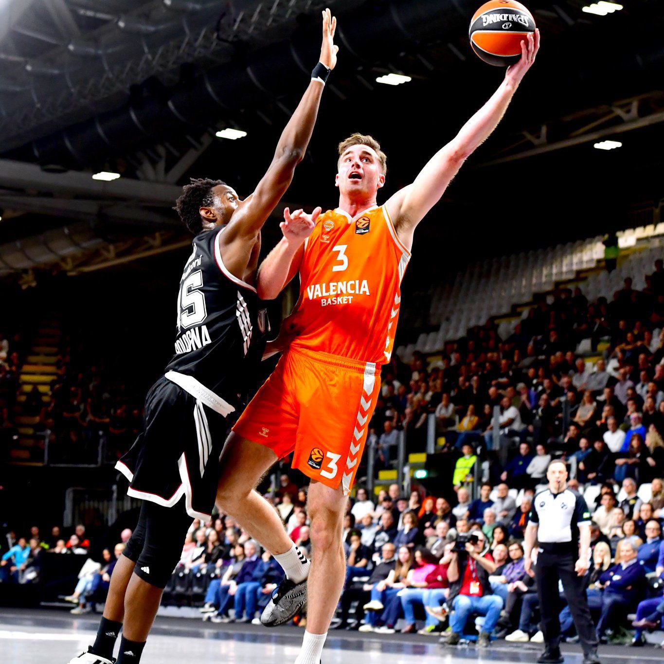 El Valencia se empleó a fondo en defensa para mantener, al menos, ese colchón de puntos. Reuvers seguía viendo canasta con facilidad pero el equipo ‘taronja’ no conseguía romper el partido. La Virtus perdía agresividad defensiva por la lesión del argentino Vildoza y poco después era De Larrea quien se retiraba con molestias en su rodilla.