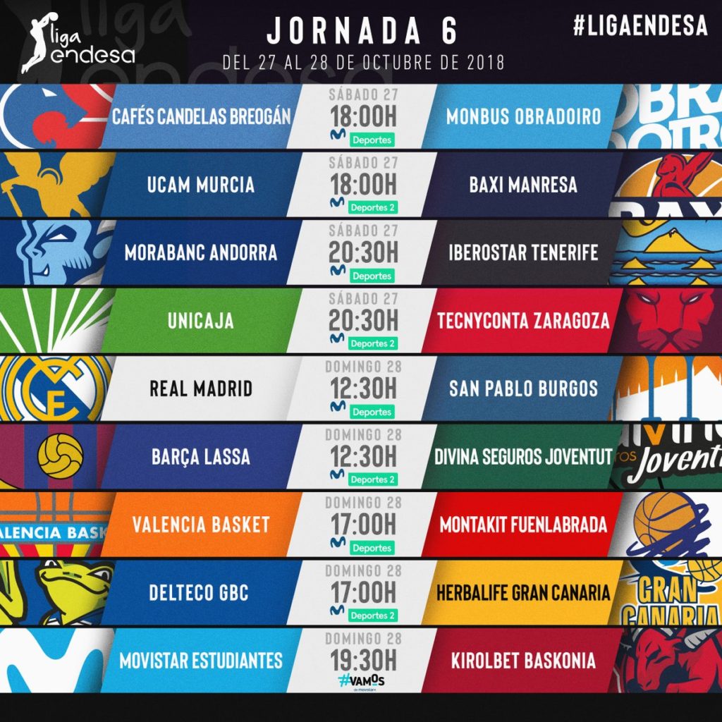 Este sábado tenemos cuatro partidos de la sexta jornada de la Liga Endesa. Destaca el derbi gallego entre el Breogán y el Obradoiro, que no se vive desde el 2001.