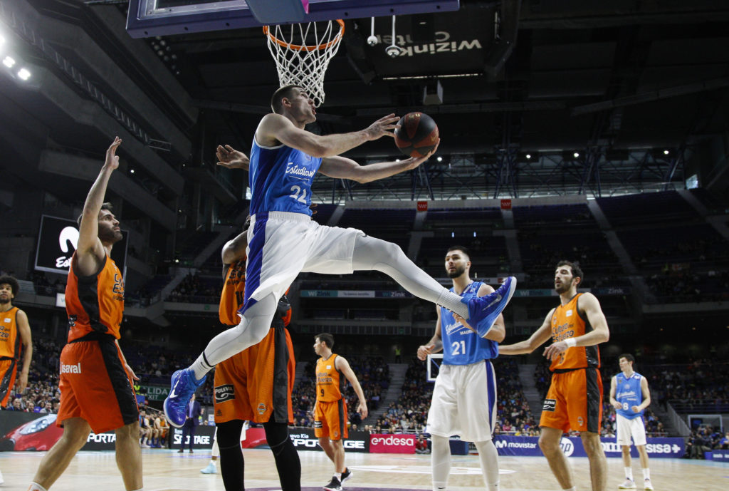 El donostiarra siguió tirando del conjunto madrileño (63-59, min. 33). Apareció San Emeterio, mejoró la defensa taronja y empate a 65 a cinco minutos del final. Quedaba ver si los visitantes imponían su mayor calidad y banquillo y si el ‘Estu’ salía de este bache anotador.