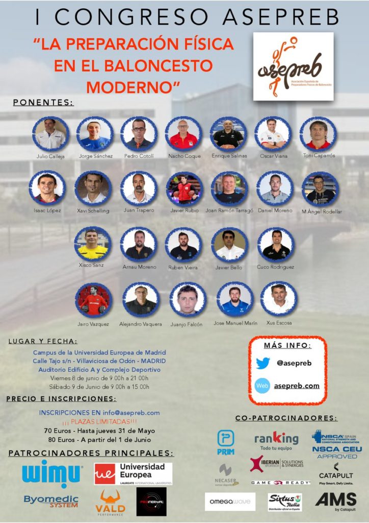 La Asociación de Preparadores Físicos de Baloncesto (Asepreb, que presiden Juan Trapero, del Real Madrid) ha preparado un interesante congreso que se va a realizar los día 8 y 9 de Junio en Madrid, concretamente en las instalaciones del Campus de Villaviciosa de Odón de la Universidad Europea.