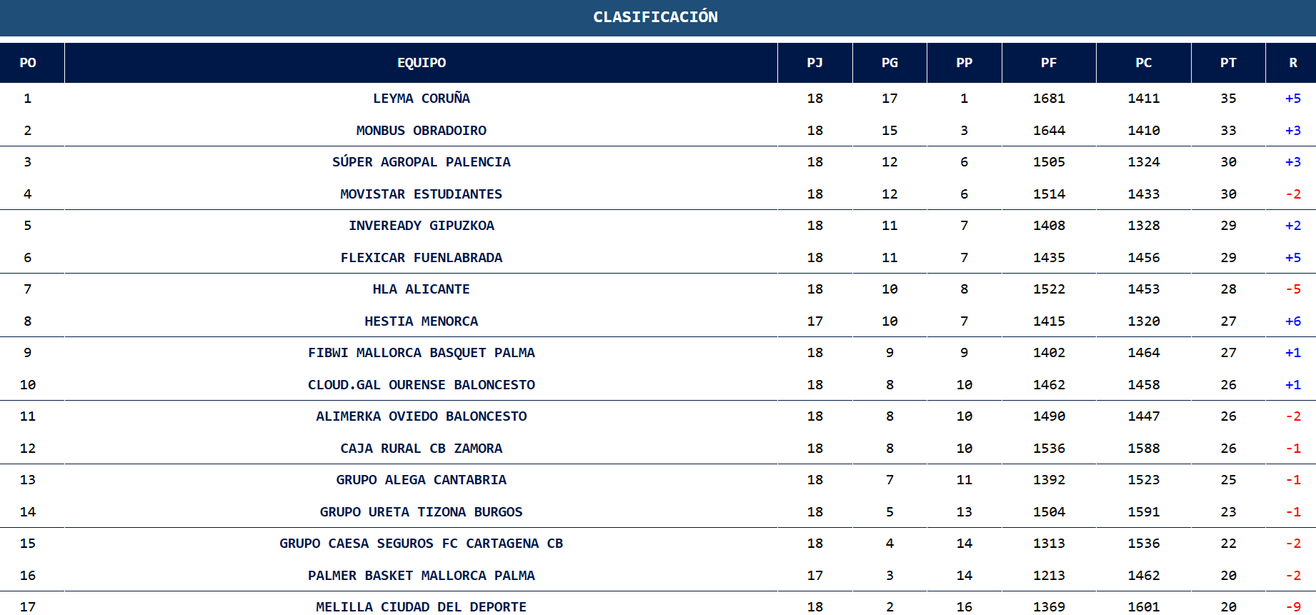 Partidazo en Oviedo, gran ambiente en su nuevo pabellón pero Coruña consiguió pasar otro duro examen, Caio Pacheco quiere jugar si o si en ACB. El dominicano M.Townes les puso en problemas. Obradoiro también ganó en cancha dura, Zamora, Dos Anjos que ha mejorado su físico y Alex Barcello decisivos, 11 jugadores de Obra anotaron. Las bajas de Granger y Nwogbo y la copa hicieron mella en Estu, deberes hechos pero a su afición no les gusta esta situación, largo final de LR. Sólidas victorias de Fuenla y GBC al alza y otra derrota de Alicante, -5 de racha, que sólo cedió en último período en Ourense, otra gran actuación de Kalscheur, su pasaporte USA le dificultará acceder a ACB. Menorca ganó y lleva la mejor racha, +6, con Fer Zurbriggen imponiendo su físico y Jaume Lobo, 4-7 T3, con ganas de ACB. Alega peleó pero fue inferior, muchos problemas de lesiones y fugas, ahora Lapornik y Lutete, por lo menos quedan en zona tranquila.