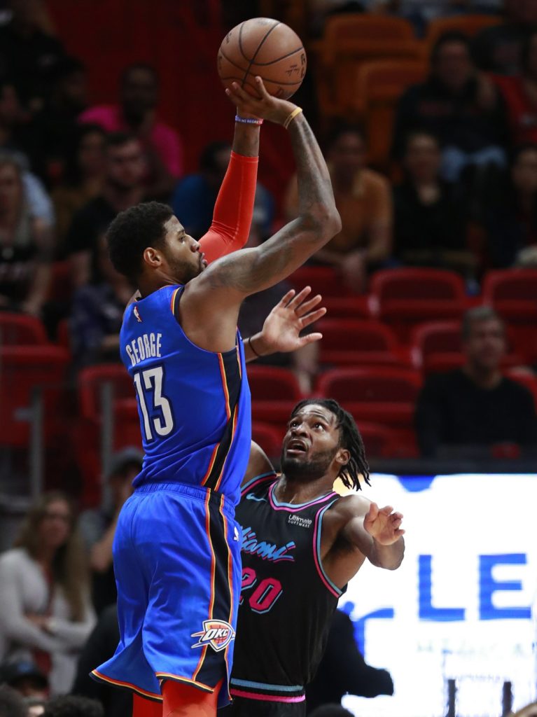 43 puntos Paul George con un tremendo 10 de 16 en triples y 9 minutos, sin anotar, Abrines: